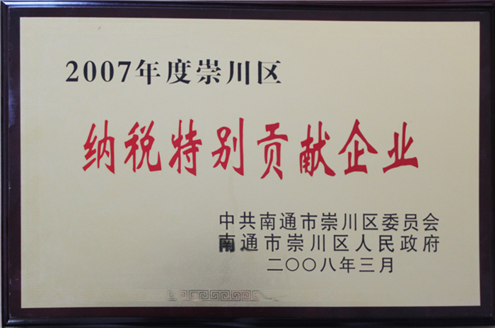 2007崇川區(qū)納稅特別貢獻企業(yè)